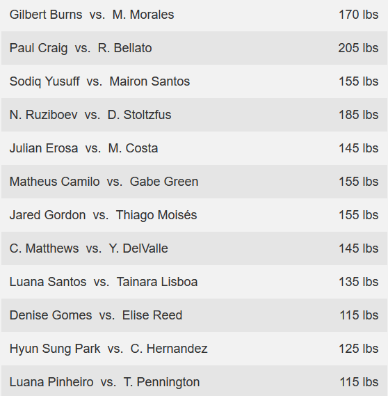 WELTERWEIGHT: Gilbert Burns (22-8, #8) vs Michael Morales (17-0, #12)