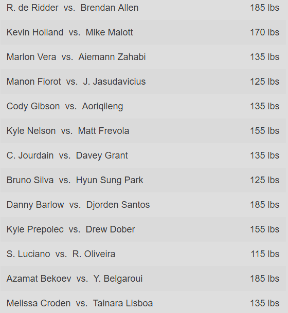 WELTERWEIGHT: Kevin Holland (28-14 (1), #15) vs Mike Malott (12-2-1, NR)