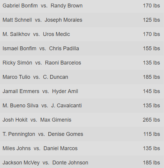 WELTERWEIGHT: Gabriel Bonfim (18-1, #14) vs Randy Brown (20-6, NR)