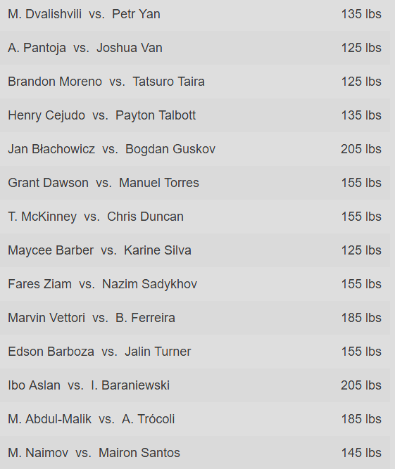 I dunno, man. I’m not sure I’m feeling it. Van’s got some real good boxing and some real good leg kicks and he’s an enormous pain in the ass to keep off of you. He also gets taken down a lot. Maintaining top position on Van has proven to be real, real difficult for most people, but Alexandre Pantoja is not most people, and as good as Van’s striking is, he doesn’t actually finish people with it all that often, and Pantoja’s proven to have one of the toughest chins in the sport.