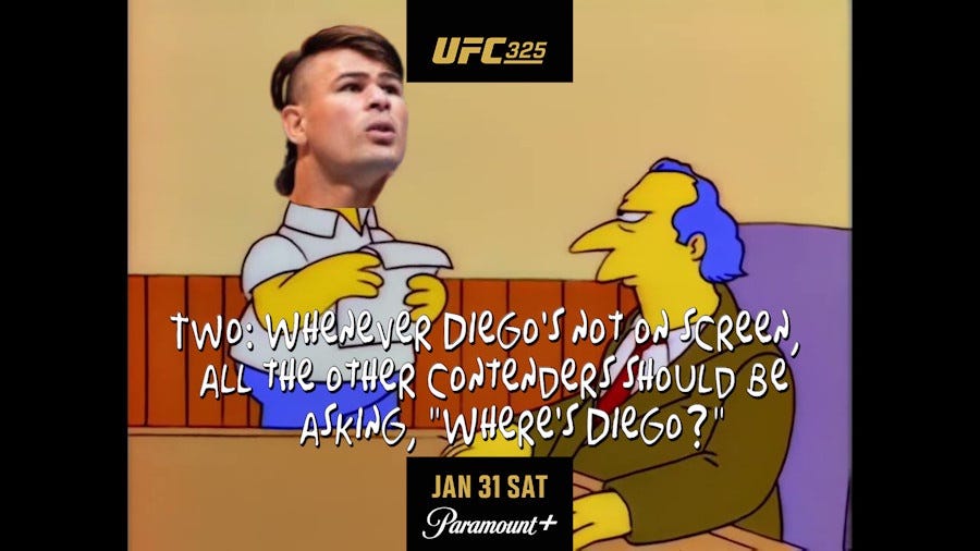 The point is: Nothing about this is new. Not the shortchanging of standing champions, not the devaluing of contendership, not even the refusal to acknowledge top contenders. All of this has happened before and all of this will happen again. If there's a difference in the modern age, it's the incredible combination of the speed with which the UFC is currently doing it and the shamelessness with which they do--or don't--talk about it. Diego Lopes fought Alexander Volkanovski for the Featherweight championship nine months ago, he lost a clear, unanimous decision, and somehow he's here, again, and we're going to digress a moment in discussing why.