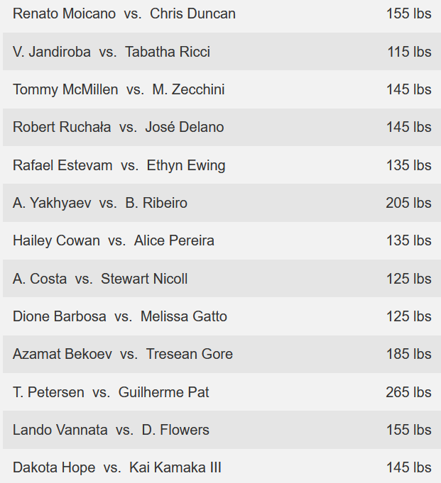 LIGHTWEIGHT: Renato Moicano (20-7-1, #10) vs Chris Duncan (15-2, NR)