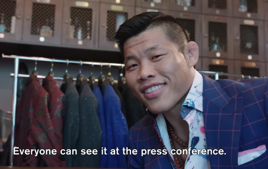 At the start of this week, the world was Li's. He had the biggest fight of his career against an opponent he had every advantage over, he was going to get a big win on an extremely visible and guaranteed-to-be-viral card, and he was very, very proud of the snappy new suit he'd bought that he was very excited to show off.
