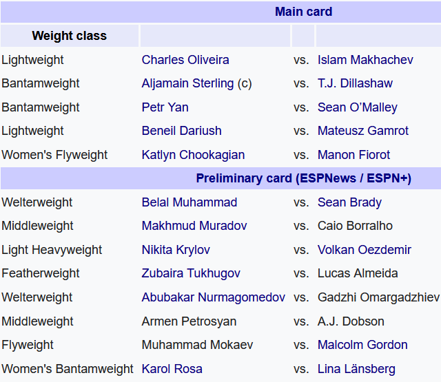 LIGHTWEIGHT CHAMPIONSHIP: Charles Oliveira (33-8 (1), #1) vs Islam Makhachev (22-1, #4)
