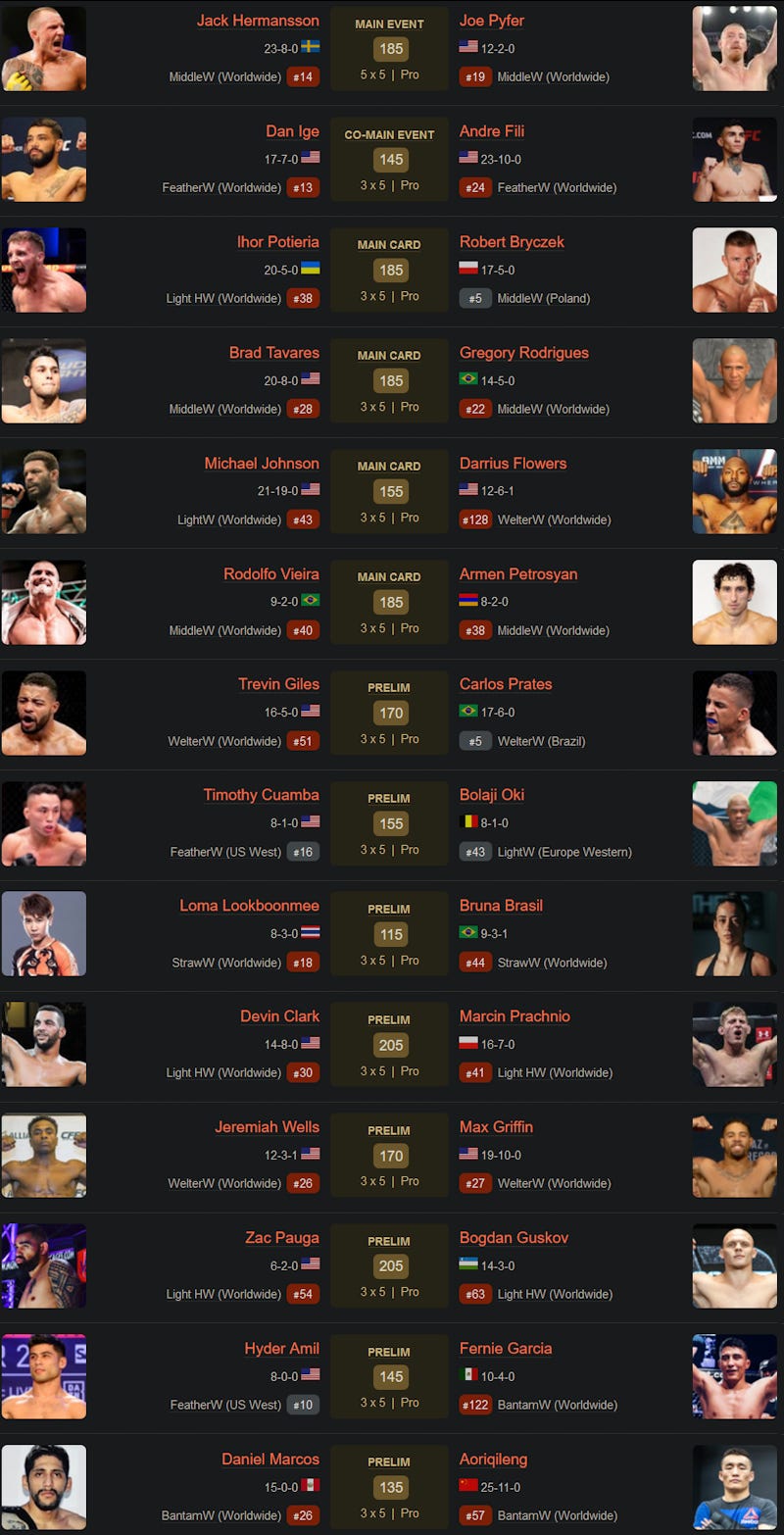 MIDDLEWEIGHT: Jack Hermansson (23-8, #10) vs Joe Pyfer (12-2, NR)