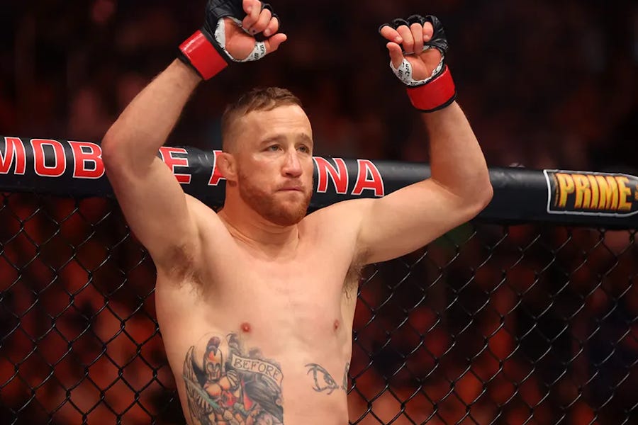 One of the foundational subjective mixed martial arts questions, right alongside ‘who’s the pound-for-pound best’ and ‘what if Cro-Cop ducked that kick,’ is ‘Who’s the best fighter to never win a championship?’ There are different answers for every generation, and one of the complicating factors is the inevitable debate over whether interim titles count. Was Carlos Condit a UFC champion? What about Colby Covington or Yair Rodríguez? It’s still an incredible achievement, but it’s just not quite real the way an undisputed title is. And I cannot imagine what sort of a backhanded career accomplishment it is to be the only person in UFC history to win their division’s interim title twice. Justin Gaethje has been right on the edge of the top for so long he’s got two half-championships in his closet. Back in 2020 he fought Tony Ferguson, then arguably the scariest Lightweight in the world, and beat him so horrifically that his career never recovered, and that netted Gaethje his first interim belt, which he promptly lost to Khabib Nurmagomedov in the latter’s retirement bout. Two years later, Gaethje got his second shot at the undisputed title against Charles Oliveira and he wound up strangled in three and a half minutes. Three and a half years after that, Gaethje was still right there at the precipice of the top, Ilia Topuria needed a break from the sport, and the UFC needed an aging veteran to propel their marketing star Paddy Pimblett to the top, and at UFC 324 on January 24, 2026, they threw Paddy’s big party and Justin crashed it. The UFC will tell you the fight was close, and it was in the sense that it went the whole way and one judge only gave Justin three rounds, but Paddy got brutally beaten and dropped repeatedly. Once again, Justin Gaethje is the interim champion, and because everything sucks, he’ll try to unify the belt against Topuria at the White House.
