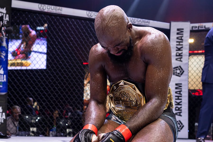 Are you noticing how all of the inaugural PFL champions are just Bellator’s champions? Funny, that. Cris Cyborg is the greatest Women’s Featherweight of all time, and we all just kind of have to deal with that, because Women’s Featherweight has only barely ever existed. Strikeforce set the standard back in 2006 because Gina Carano was one of their biggest stars, and that star lasted right up until 2009, when they attempted to put a belt on her and failed because Cris Cyborg punched the shit out of her. In the following sixteen years Cyborg’s only lost one mixed martial arts fight, and it took Amanda Nunes, the greatest Women’s mixed martial artist of all time, to do it. Aside from that one loss, she’s run the table. She was the Strikeforce Featherweight Champion until it closed, and then she was Invicta’s Featherweight Champion until they let the UFC have her, and then she was the UFC’s Featherweight Champion until Amanda dropped her, and Cyborg promptly went to Bellator and won their title, too. When the PFL brought her over in the Bellator buyout, they set her up for an interpromotional superfight against Larissa Pacheco, a two-time PFL tournament winner and the only woman who’d ever beaten Kayla Harrison. On one hand, Pacheco’s one of just six women to ever make it to the final bell with Cyborg. On the other, she lost 4-1. In the ultimate act of promotional cowardice, the PFL promoted Cyborg to champion status three days before her appearance at the PFL Champions Series on December 13, 2025, meaning her fight with Sara Collins was, technically, a title defense. It was as one-sided as you’d expect. In theory, this is great! The biggest female fighter outside the UFC has a belt and the PFL is bringing back a division the UFC threw in the garbage. In practice, Cyborg didn’t even get out of her post-fight interview without noting that after her next fight she’s going to retire from MMA in favor of focusing on her boxing career. So welcome back, Women’s Featherweight. I hope you still exist by 2027.