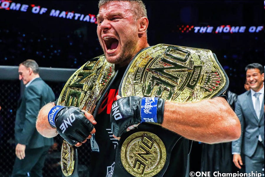 For the second time in as many title reigns, ONE has managed to put a ton of hype behind a champion only to squash them prematurely. Anatoly Malykhin is one of the most successful marketing campaigns ONE ever ran: An undefeated, heavy-punching Russian Heavyweight with a 100% finishing rate. He knocked out everyone he faced, he carried ONE’s Heavyweight division as an interim champion while standing champion Arjan Bhullar was having contract issues, and when Bhullar finally re-entered the fold, Malykhin destroyed him with ease. But ONE had greater hopes for Malykhin as their spearhead for real international notoriety: They would make him the first three-division champion in the history of mixed martial arts. And it’d be real easy, because the other two belts were held by one guy. Reinier de Ridder had been their superstar double-champion, but his relationship with ONE had soured, and they cashed in by having de Ridder face Malykhin, twice, at both his weight classes. Malykhin destroyed him and became the first-ever 265, 225 and 205-pound champion the sport has ever seen--admittedly easier when you consider 225 is not a division that exists in almost any other federation on Earth. But he did it! And then they organized his first-ever title defense by having him put the Heavyweight belt on the line against Oumar “Reug Reug” Kane, and he lost a split decision, and now he is a lowly two-belt schmuck. It’ll be interesting to see what they do with Malykhin now, given that the last 205-pound fight ONE promoted was Malykhin’s bout against de Ridder, and the last 225-pound fight ONE promoted was Malykhin’s 2022 bout with de Ridder. He was hoping to get the Heavyweight title back at ONE 173, but with Reug Reug injured, Malykhin’s playing the waiting game.