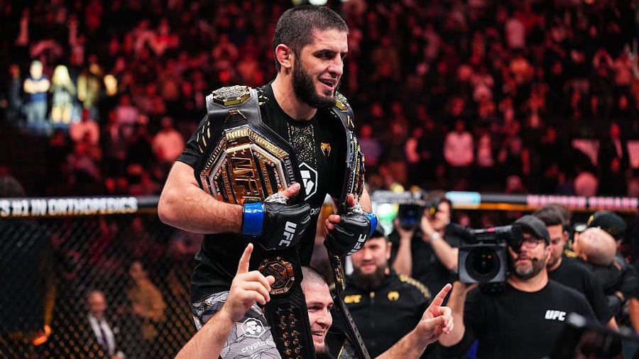 Yeah, this was probably inevitable. When Khamzat Chimaev showed up in the UFC in the middle of the Fight Island pandemic era and wrecked two people in ten days at two different weight classes, the world was prepared to believe he was special. When he ended Gerald Meerschaert with one punch less than two months later, all doubt was cast aside. The fighters, the audience, and the UFC itself were all true believers in the championship future that lay ahead for Khamzat Chimaev. Khamzat, in response, retired from mixed martial arts. As it turns out, fighting in the middle of a COVID pandemic makes it more likely you’re going to get COVID. Who’dve thunk? After a year, some prodding from Dana White and reportedly a lot more personal prodding from Ramzan Kadyrov, the dictator in charge of Khamzat’s native Chechen Republic, Khamzat returned to the sport a year later. His dominance continued unabated, but his schedule never recovered--in fact, it worsened. After a particularly unfortunate 2022 episode involving Khamzat torpedoing his own pay-per-view main event against Nate Diaz after missing weight by almost ten pounds and very nearly cancelling the event altogether, he instead wound up strangling Kevin Holland, taking another year off, moving permanently to Middleweight, and adopting a new schedule whereby he fought only once every twelve months, and every time he appeared, something bizarre would happen. In the first episode of New Khamzat he showed up in 2023 for what was supposed to be a long-awaited showdown with Paulo Costa, but Costa, as he is wont to do, pulled out and resulted in Welterweight champion Kamaru Usman stepping in with just days to prepare. Even weirder: He gave Khamzat the closest fight he’d ever had. One judge scored the fight a damn draw. Khamzat’s struggle with a career Welterweight gave a lot of folks pause when, one year later, he returned to face Middleweight kingpin Robert Whittaker. Rob was universally respected as one of the best 185-pound fighters in UFC history, and while he’d lost, he’d lost only to the best and never easily. Khamzat steamrolled him in three and a half minutes. He face-cranked him so hard it snapped a previous palate injury and left Rob’s bottom teeth floating in his mouth. By the time Khamzat came back in 2025 for his long-awaited shot at the belt, Dricus du Plessis had etched his spot in the record books as one of just five men to ever defend the Middleweight championship multiple times. He’d beaten everyone the UFC put in front of him, and he was still a betting underdog. The conventional wisdom was Khamzat would choke Dricus out in the first two rounds or Dricus would drag him through a difficult back half of the bout. As it turned out: Everyone was wrong. Khamzat did hand out one of the most one-sided championship victories in UFC history, but rather than destroying Dricus, he just outwrestled him for five straight rounds. He didn’t engage on the feet, he didn’t land much in the way of heavy ground-and-pound, and he isn’t even credited with a single submission attempt. Khamzat landed 529 strikes and only 37 of them were considered significant. But Khamzat won, unquestionably and easily, and now he has the belt everyone long assumed he’d get. It looks like he’ll be defending the belt against Nassourdine Imavov, but not until after Ramadan.
