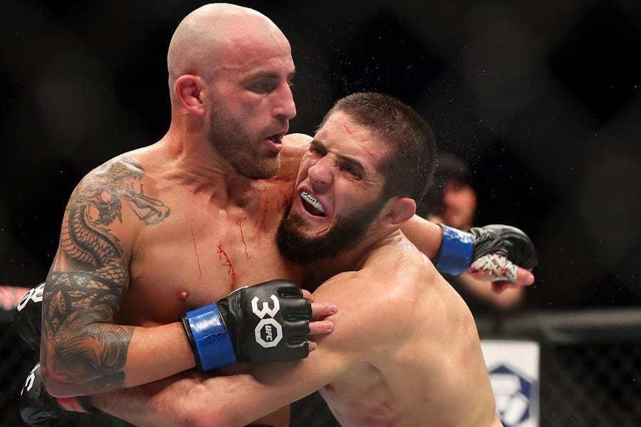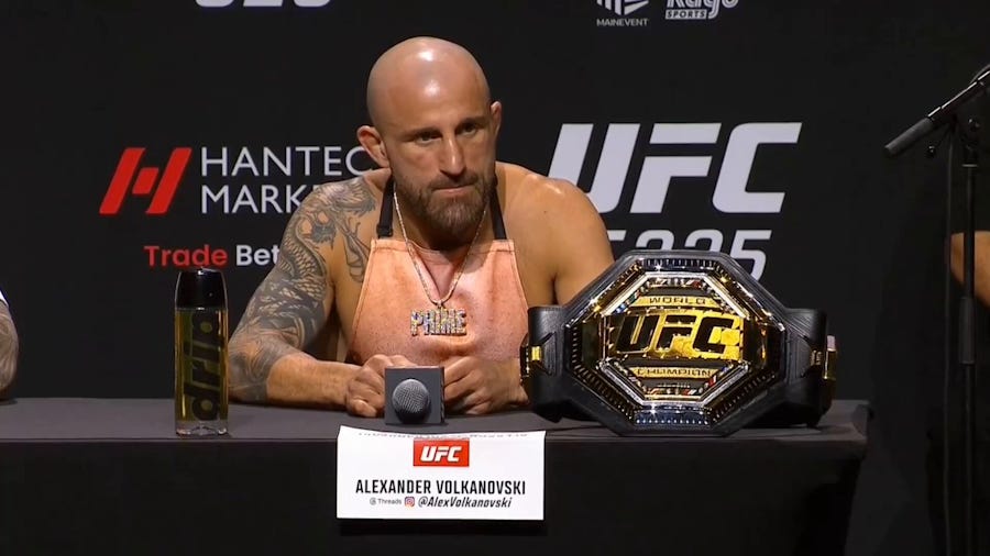 And just like that, 2024 never happened. For eleven years Alexander Volkanovski was the best Featherweight on the planet, and most of that time was simply waiting for everyone else to notice. He was short and he won by decisions a lot and the world was entirely into Max Holloway so he skated under the radar right up until the moment he finally beat Max. And that wasn’t enough to convince people, so Volkanovski beat him again. And that somehow made the world doubt him even more, so he beat Max a third time. By 2023 Volk was second only to all-time great José Aldo in Featherweight title defenses--and he’d beaten Aldo in a fight, and his only actual loss was an all-timer of an effort against Islam Makhachev that still stands as the closest Islam has come to losing his title as the best pound-for-pound fighter in the world, so it was very, very easy to accept Alexander Volkanovski as the greatest Featherweight on the planet. And then he took a rematch with Islam with only one week to prepare and got knocked out in three minutes, and then he came back less than four months later and got flattened by Ilia Topuria, and in the space of two fights the audience went from celebrating him as the best around to calling for his retirement. Volkanovski took an entire year off to heal and rebuild, which was enough time for Ilia to get bored and vacate the belt to go chase Lightweight greatness, and the Topuria/Volkanovski rematch became Volkanovski vs Diego Lopes at UFC 314 on April 12 to fill the vacant throne instead. It was somehow both close and clear. Lopes gained steam in the middle stanza of the bout and at one point dropped Volk, but Volk got right back up and resumed punching him in the face, and by the end of the bout he’d outlanded him more than two to one. The judges sided with him, the audience sided with him, and Alexander Volkanovski became not just one of the rare few to win back a UFC title, but the first man over 35 to ever win a UFC belt in the sub-170 weight classes typically reserved for young lions. His logical next contender should’ve been Movsar Evloev, but the UFC was busy trying to get him to fight an unranked, debuting Aaron Pico, thus clearing the way for a rematch with Yair Rodríguez in Guadalajara for Noche UFC 3 in September. Except the Arena Guadalajara wasn’t done yet, so Noche UFC 3 got moved to the most Mexican of places, Las Vegas, in October, and Alex’s manager said he had an eye injury that needs time to heal, so he took the rest of 2025 off. Good news, though: That left time for the UFC to get new contenders going. Lerone Murphy wound up fighting and knocking out Pico! Aljamain Sterling beat Brian Ortega! Hell, Movsar Evloev is still right there! The UFC looked at all of them and gave them all the finger. At UFC 325 on January 31, fresh off his title victory over Diego Lopes, Alexander Volkanovski had his first title defense against Diego Lopes. Unsurprisingly, the guy who beat Diego Lopes beat Diego Lopes again. Rumor has it the UFC’s going to have Evloev and Murphy fight in March, and presumably the winner’s got next.