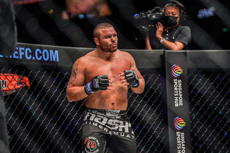 It was a very good, but very strange, 2022 for Anatoly Malykhin. With Bhullar out indefinitely, the undefeated Russian bruiser was placed in the driver's seat of the heavyweight division, and after quickly dispatching of an outmatched Kirill Grishenko, Malykhin took home an interim championship. ONE planned to reunify the championships fairly quickly, with Bhullar vs Malykhin tentatively planned for ONE's debut on Amazon Prime Video in August, but Bhullar needed more time to recover from his injury layoff. The match was finally, formally announced for ONE Championship 161 on September 29--and then, the day of the aforementioned Prime debut, Bhullar announced he was pulling out with another injury. The match was once again tentatively planned for December, but the two sides couldn't come to terms, and after ten months, ONE was tired of doing nothing with their big, angry punchman. The new announcement was even more surprising: Malykhin, while remaining the interim heavyweight champion, was also dropping down to light-heavyweight and challenging the undefeated double champ and promotional kingpin Reinier de Ridder. The result was quick and brutal, as Malykhin bludgeoned de Ridder to a bleakly one-sided first-round knockout. After his undisputed championship victory, ONE took its third swing at the constantly-rescheduled heavyweight championship unification match. Bhullar vs Malykhin was booked, yet again, for ONE Fight Night 8 on March 24th, and yet again, it fell apart. They have scheduled it, yet again, for ONE Fight Night 12 on July 15.