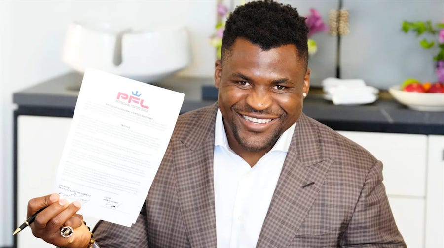 The Professional Fighters League has officially won the Francis Ngannou sweepstakes. (As it turns out: Bellator was very professional and ultimately didn't make him an offer given their current financial situation, ONE was extremely weird and was Chatri mostly telling him how every person in Asia was a ONE viewer, and BKFC said they rejected his offer for costing too much when in reality they never actually talked to him.) Ngannou got essentially everything he wanted: Multi-million dollar paydays, a guaranteed multi-million dollar payday for anyone who fights him, the right to pursue boxing matches, a seat on the board, and a talent expansion in Africa. Ngannou isn't even expected to fight for PFL until next year, as he's apparently pursuing a boxing fight for this Fall.