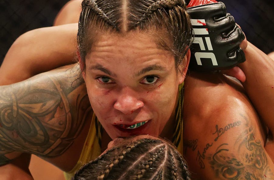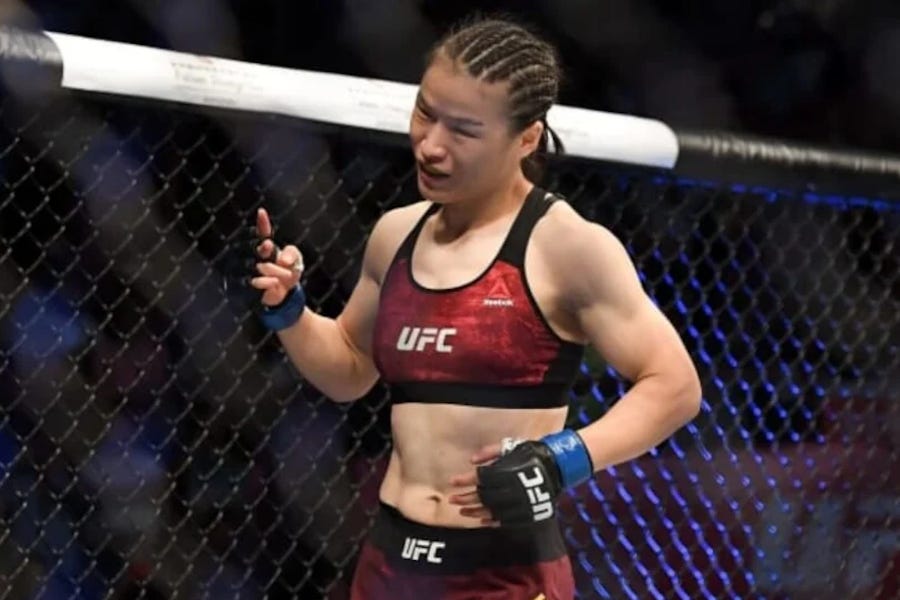 Are you really surprised? There's a long tradition of underestimating unlikely champions in mixed martial arts, particularly when they're not the fan-friendliest in style or personality, from Michael Bisping to Frankie Edgar, only to have those demeaned champions remind the world that they didn't reach the peak of their divisions by mistake. Many of the wise, studied scribes of the sport warned the foolish masses against assuming the same about Women's Strawweight Champion Carla Esparza: She was no pushover, they said, and Zhang will have real trouble. And then, come fight day, we unwashed masses pulled them from their ivory towers and forced them to run in the streets amongst the mud and filth so they, too, could feel the unburdened joy of being, because Zhang Weili, as basically every fan had assumed, did, in fact, beat the absolute tar out of Carla. It wasn't particularly close: Carla got outlanded 37-6, hurt several times on the feet, and choked out just a minute into the second round. The inexplicable, season-long Cookie Monster subplot is over, Zhang Weili is now a two-time world champion, and things are back as they should be. What comes next, however, is tricky. Carla was blown out, so a rematch is out of the question. Rose Namajunas, the only person in the UFC to beat Weili, is a likely candidate--but after her disastrous performance against Carla, it remains to be seen how much faith the UFC has in her. Jéssica Andrade has a claim, but she's splitting time between 115 and 125, and probably needs to pick a weight class if she wants a shot. So the UFC solved the problem by picking Amanda Lemos. The assumption was the UFC was waiting for Lemos to get one more big win, but after seven months of silence, it turns out they were fine with her all along, apparently. She'll face Zhang for the belt at UFC 292 on August 19th.