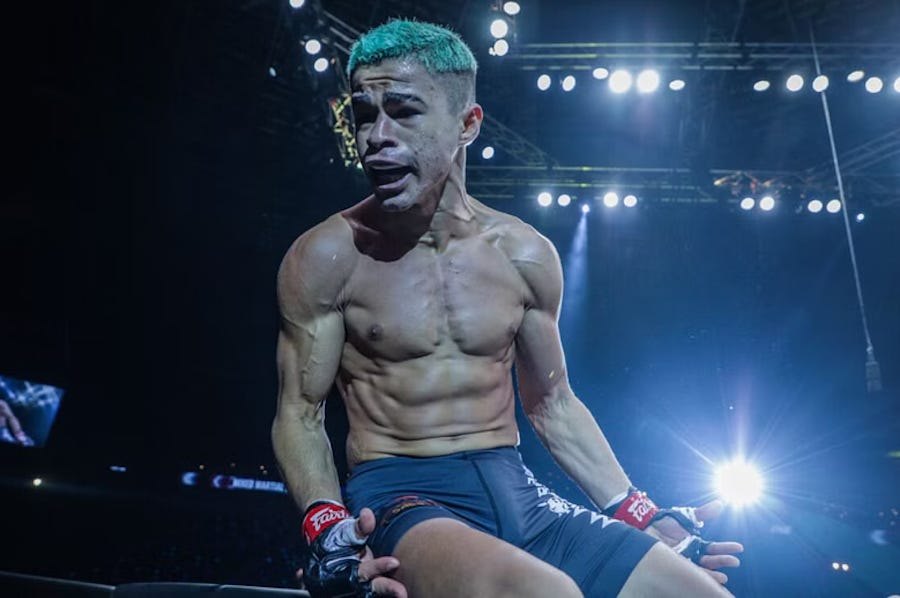 The second time was the charm. When Fabricio "Wonder Boy" Andrade joined ONE Championship back in 2020 he was a virtual unknown in the mixed martial arts world, a 20-3 kickboxer but only a 3-2 mixed martial artist who'd been fighting out in the regional circuit of China. His association with Tiger Muay Thai put him on ONE's radar, and his visible striking skills despite being just 21 at the time made him interesting enough for a developmental contract. Said contract proceeded to develop into Andrade going on a five-fight winning streak that only got more dominant as he met tougher competition, and three straight first-round knockouts punched his ticket to the championship picture. His first appearance in the spotlight, unfortunately, went a touch awry. First, bantamweight champion John Lineker lost his title on the scale after missing weight, meaning only Andrade was eligible to become champion, and he was well on his way to doing so before hitting Lineker with an errant strike to the groin so hard it shattered his cup, and with the fight not yet halfway complete, it had to be rendered a No Contest. It took four months to get to the rematch, and it was much more closely contested, but after four rounds Lineker threw in the towel, his face having been punched too swollen to continue. Fabricio Andrade is 25 and a world goddamn champion.
