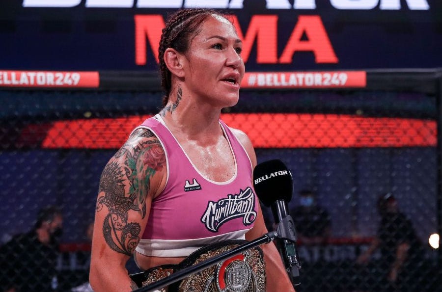 Yup. It's 2023 and Cris Cyborg is still out there. For those who don't know, Cris Cyborg was the canonical women's featherweight fighter, a muay thai wrecking machine who didn't just beat but brutalized essentially all of her opponents, including ex-Star Wars Gina Carano, and her popularity as a destroyer of humans is the only real reason women's featherweight even exists as a division, to the point that the UFC added it when she was the only actual fighter at the weight class they employed. She was 20-1 (1) when she passed the torch to Amanda Nunes, who slew her in just fifty-one seconds. She took one more fight in the UFC to complete her contract, but left for Bellator almost immediately afterward with uncharacteristic cooperation from the UFC itself--after all, they'd gotten what they wanted out of her. Her first Bellator fight was a one-sided destruction of their featherweight champion, and she's defended it three times since. At this point in Cyborg's career the problem isn't her or her fighting or her age, but simply that there's no one in Bellator for her to fight--after just five fights she's already hitting rematches, having just recorded her second one-sided bludgeoning of a very game but outmatched Arlene Blencowe. Cyborg decided her next fight would be a boxing match, and on September 25 she faced Simone da Silva, a jobber to the stars coming off twelve straight losses who had been knocked out just one month prior. Undeterred, she had her second boxing match on the undercard of December 10th’s Crawford/Avanesyan card, taking a unanimous decision over Gabrielle “Gabanator” Holloway, who is 6-6 in MMA and 0-3 in boxing. It's kind of tiring to watch the second-best women's featherweight in MMA history take repeated nothing boxing matches, but on the other hand, what on Earth is there better for her to do right now, other than, uh, use her instagram account to call for a military coup of her home country in the hopes of restoring fascism to power?